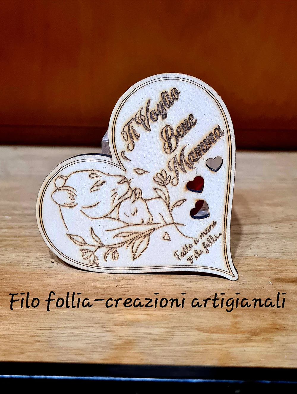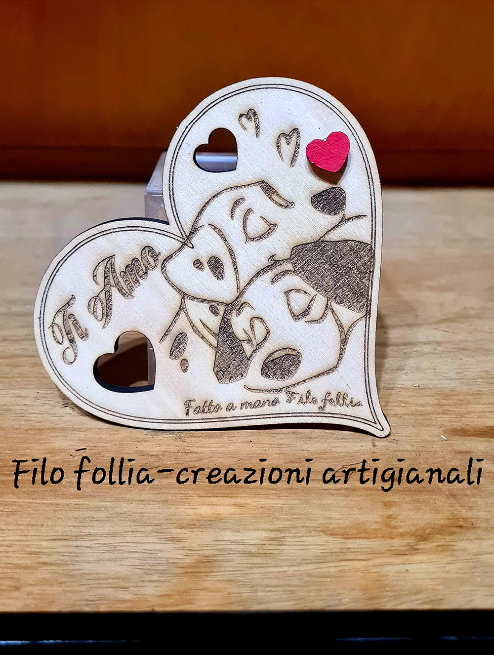 CALAMITE CUORE con dedica, realizzate in legno di pioppo. Creazioni artigianali.